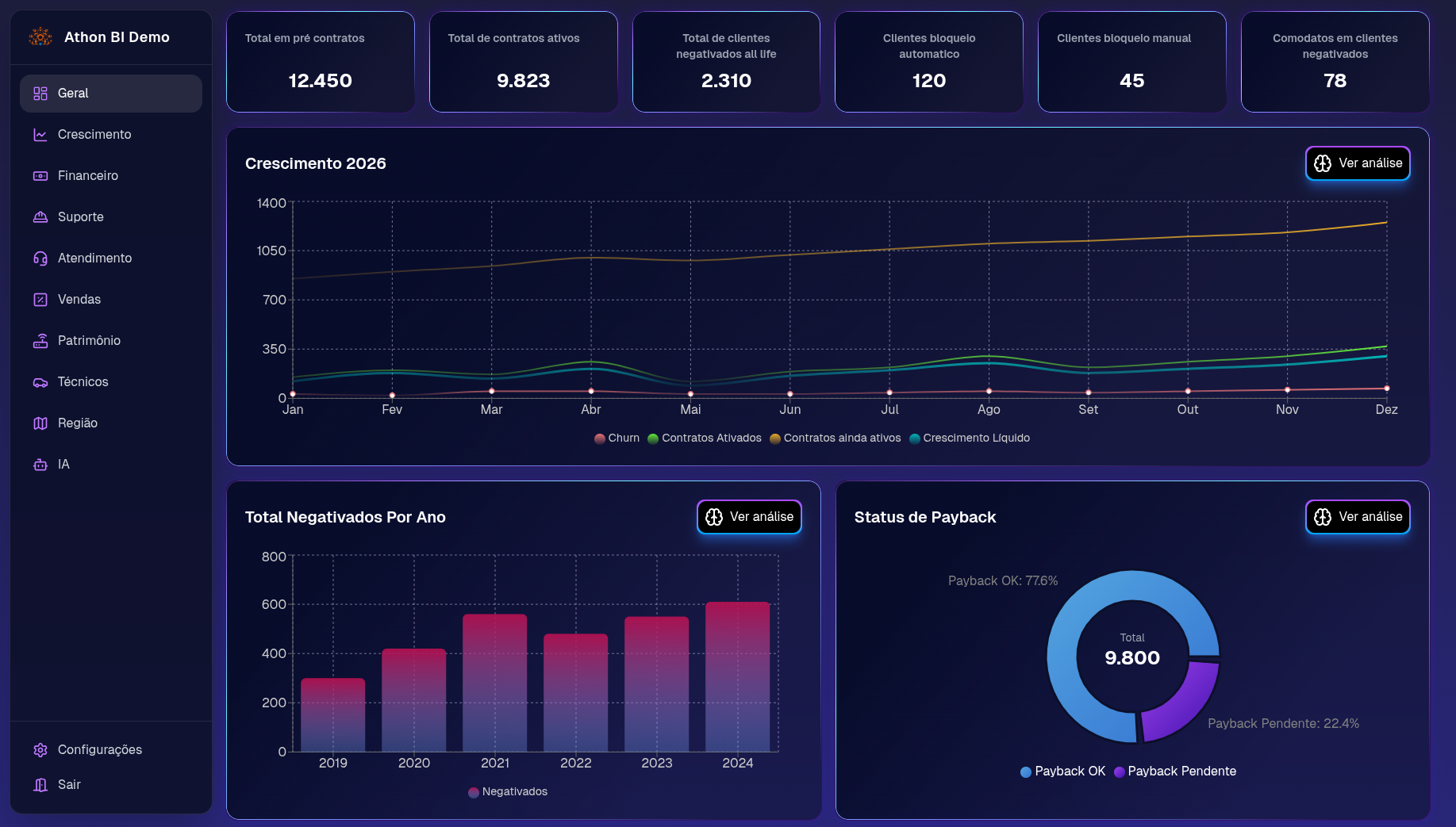Criamos nosso próprio modelo de inteligência artificial, personalizado para atender às necessidades específicas da Athon Networks, garantindo maior eficiência e precisão, montamos nossa ring e hoje nossa IA tem capacidade de análisar dados com precisão.
